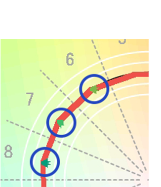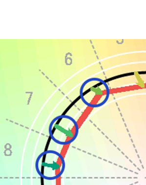 図14:図13の一部を拡大。(矢印を青丸で囲んだ)