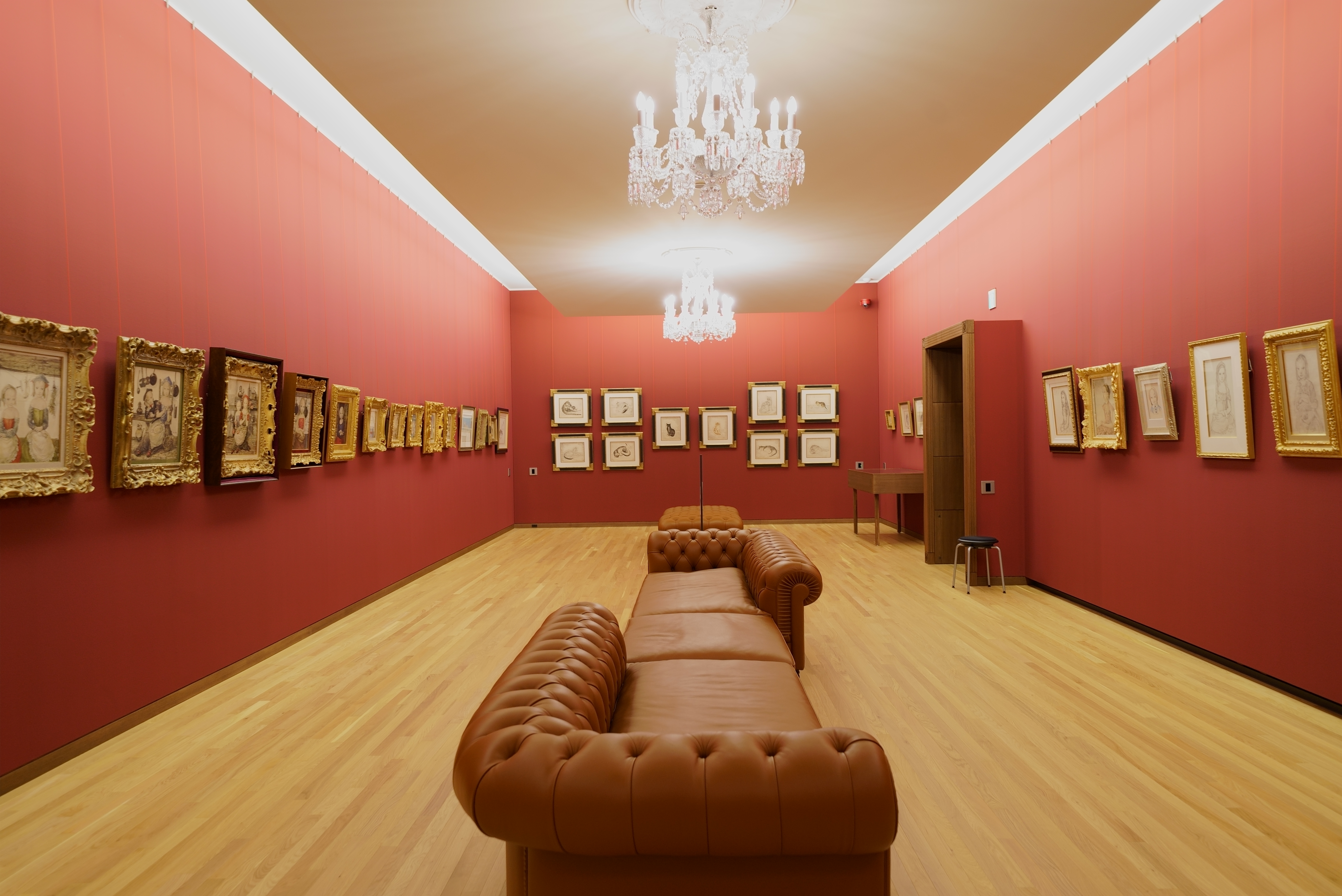建築設計:株式会社ディーディーティー「自宅のような美術館」という意図から、家庭的な間接光の柔らかい光に包まれながら、リラックスした気持ちで絵画を鑑賞できるような計画としつつ、美術館としての機能性を両立する配慮を行った。