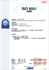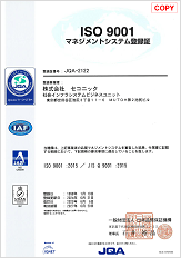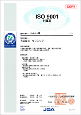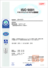当社は、お客様に安心してご利用いただける安全で高品質な商品をお届けするために、ISO9001の認証を取得しお客様の満足向上を図るべく継続的な改善に取り組んでおります。